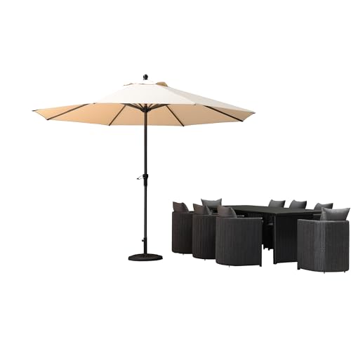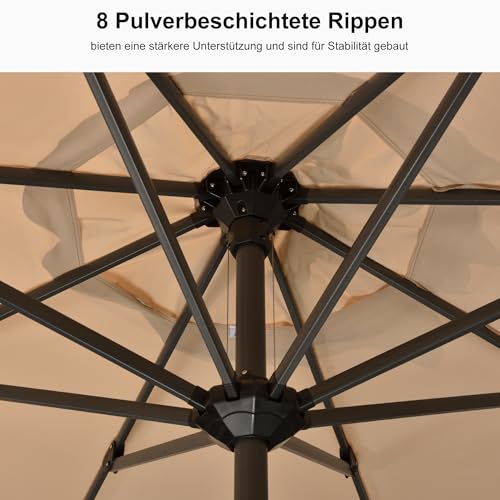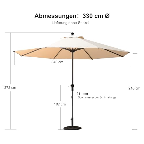PURPLE LEAF Sonnenschirm 350 cm, Aluminium runder Balkonschirm, mit Kurbel, Gartenschirm für Balkon, Terrasse, Marktschirm, UV-beständig, wasserabweisend, Beige