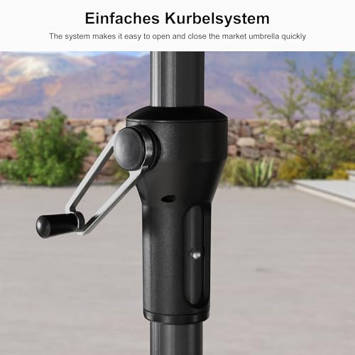 Sie öffnen und verallgemeinern den Gartenschirm jeder einfach durch die praktische Kurbelfunktion.
