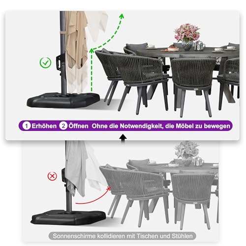 Anpassungsfähigkeit: Der Sonnenschirm lässt sich leicht öffnen und generalisieren, ohne die Möbel zu bewegen, vielleicht macht das eine innovative Teleskopvorrichtung