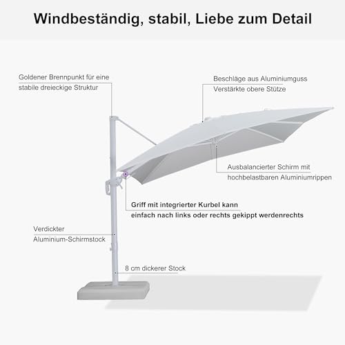 Breite Umschlag: Die Größe dieses Sonnenschirms beträgt 360 x 270 cm, bietet reich Schatten für eine optimale Umschlag. Das weiße Design ist raffinierter und sauberer und bietet Ihnen und Ihrer Familie eine komfortable Umgebung