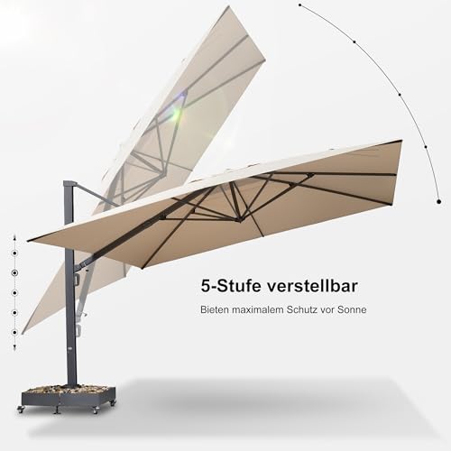 PURPLE LEAF Sonnenschirm Ampelschirm 400 x 400 cm Drehbar Neigbar Marktschirm Groß 360°Rotation, Gartehschirm mit Kurbel, XXL Sonnenschutz UV50+, Beige