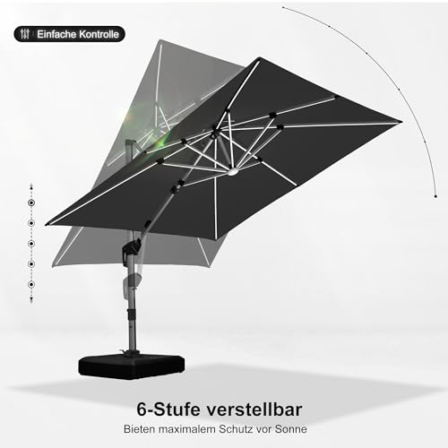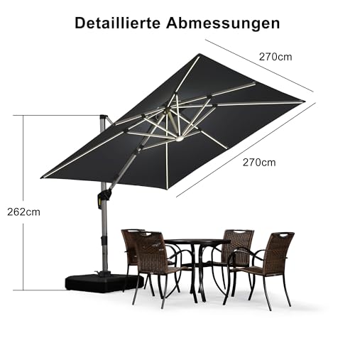 Großer Schattenbereich: Ampelschirm (ohne Ständer) Quadaratisch 270 x 270 cm mit LED Röhren, das Ihnen eine größere Sonnenschutzfläche bietet