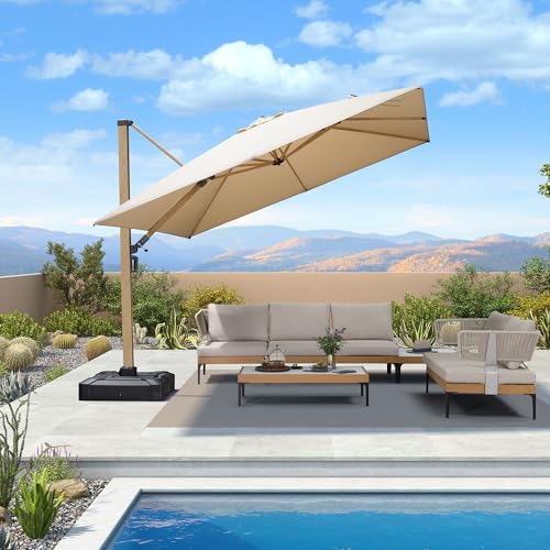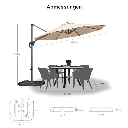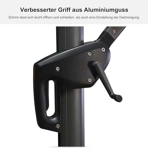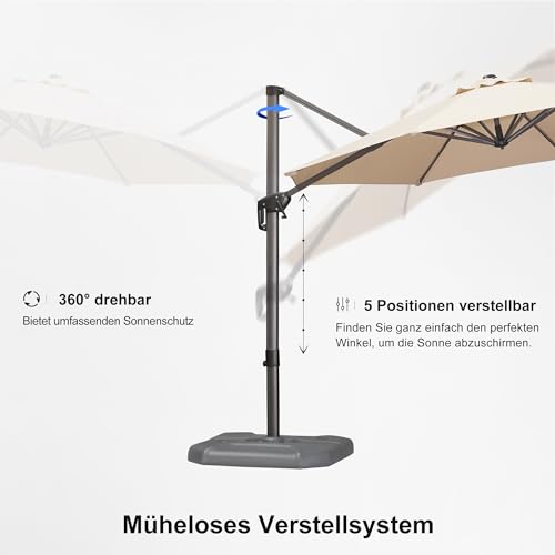 PURPLE LEAF Sonnenschirm mit Schirmständer, Ampelschirm Ø300 cm mit Kurbel, Gestell Aluminium, 360°Rotation, UV-beständig, Terrassenschirm für Balkon & Garten, Beige