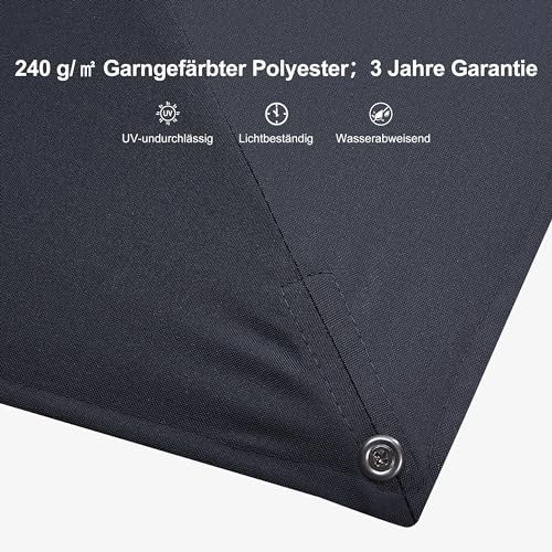 Qualität: ca. 240 g/m² Polyester, UV-beständig, wasserabweisend und lichtecht. Er ist abnehmbar, per Hand waschbar