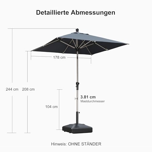 Bitte denken Sie:Der passende Sonnenschirmständer ist nicht im Lieferumfang enthalten