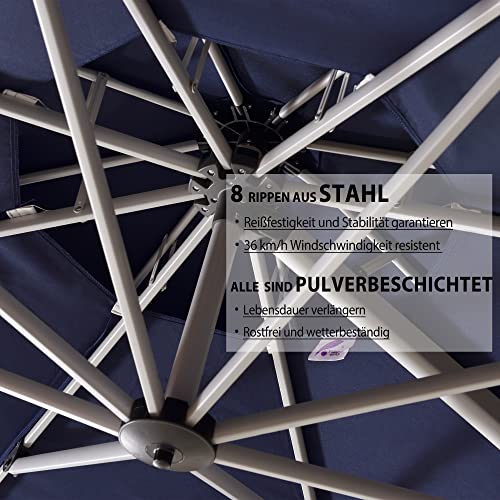 PURPLE LEAF Sonnenschirm Rechteckig 270 x 365 cm Ampelschirm Groß Stabil Marktschirm Groß 360°Rotation, Gartenschirm mit Kurbel, XXL Sonnenschutz UV50+, Marineblau