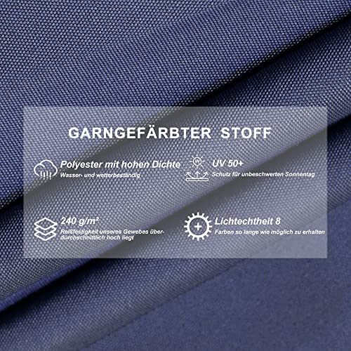 Hochwertig: 240/gsm 100% Polyester, lichtbeständig, wasserabweisend, 3 Jahre Garantie auf den Stoff, 1 Jahr Garantie auf die Komponenten