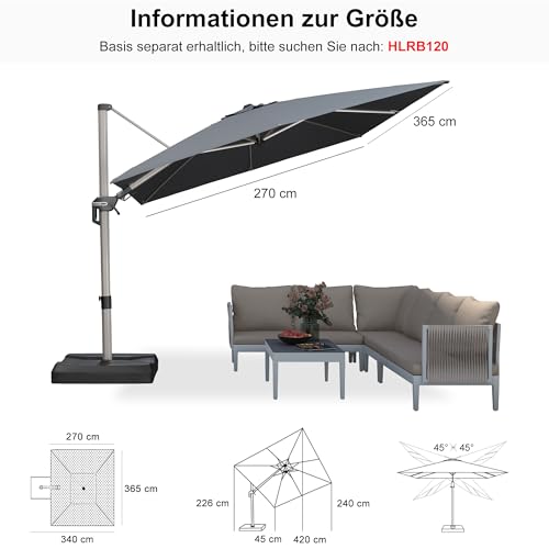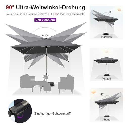 Adaptiv Drehbar: 270 x 365 cm Pendelschirm (Ohne Ständer) mit Schwenkgriff, 45° neigbar am Mast entlang. Fußpedal kann die 360°-Drehung steuern. Sonnenlicht jedweder verschiedenen Winkeln blockieren