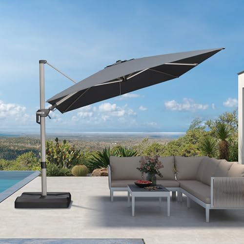 PURPLE LEAF Sonnenschirm Rechteckig 270 x 365 cm Twist Ampelschirm Pendelschirm mit Kurbel Neigbar Alu Gartenschirm 360° Drehung UV-beständig 50+ Wasserabweisend Marktschirm Groß für Garten, Grau