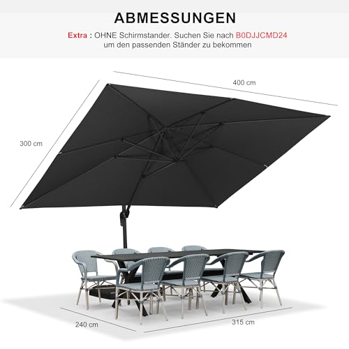 Abmessungen – Sonnenschirms beträgt ca. 300 x 400 cm (Fehler ca. 2 cm), der reichhaltig Schatten für optimale Absicherung bietet. Perfekt für Zusammenkunft, Picknick und Entspannung am Pool, um den Level Ihres Outdoorerlebnisses anzuheben