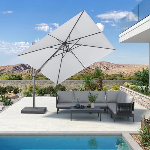 PURPLE LEAF Sonnenschirm Twist 250 x 250 cm Ampelschirm mit Strapazierfähiges Gewebe, Beidseitig Axial Schwenken, Gestell Alu, Gartenschirm mit Kurbel, 360°Drehbar, UV-Schutz 50+, Hellgrau