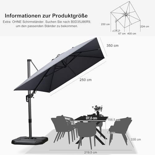 Mit wenn das nicht möglich ist verbesserter Schwenkgriff drehen das Dach nach originell oder rechts, um den ganzen Tag Abschirmung vor Sonnenstrahlen zu bieten. Per Drehteller mit Fußpedal um 360° drehbar.