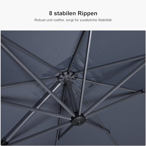 Vollaluminium-Mast und 8 hochbelastbare Rippen schützen vor Nässe und Rost. Der Gartenschirm Mast besteht ohne Lücke leer Aluminium, das leicht handkehrum robust ist.