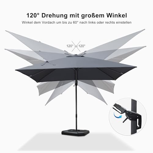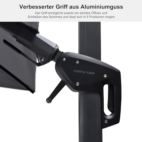 Durch einfaches Treten des Pedals und Drehen der Stange kann der Sonnenschirm 360° drehen. Mit frisch verbesserter Schwenkgriff drehen das Dach nach neu oder rechts.