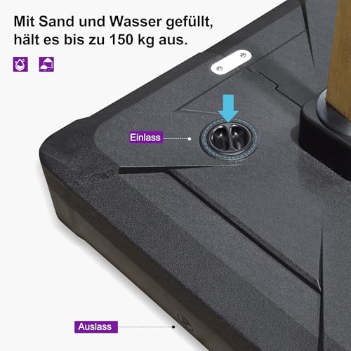 PURPLE LEAF Sonnenschirmständer BSCJL150 Schirmständer, Ampelschirmständer für Doppelen Top-Sonnenschirm groß Ampelschirm, befüllbar mit Wasser oder Sand, Gewichtsbasis 150 kg, Schwarz