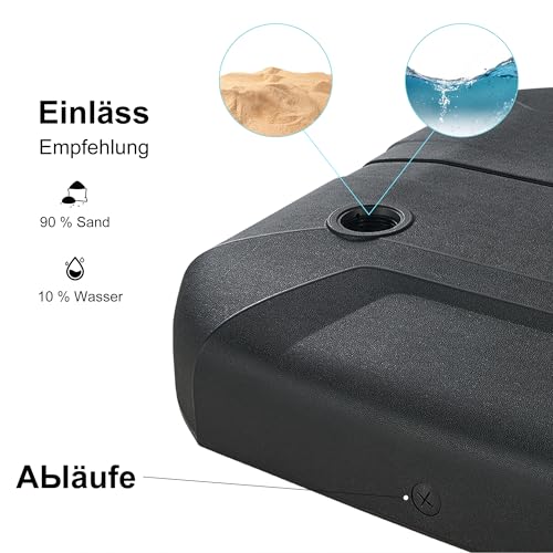 PURPLE LEAF Sonnenschirmständer ZYB150, Schirmständer, Ampelschirmständer für Sonnenschirm groß Ampelschirm, befüllbar mit Wasser oder Sand, Gewichtsbasis 150 kg, Schwarz