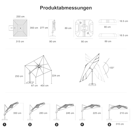 Paket: Der Sonnenschirm und dem Schirmständer werden verriegelt versendet, für eine sichere Anlieferung versendet werden. Um Ihren Regenschirm abgehärtet zu katalysieren, muss der Sockel mit Sand und Wasser gefüllt werden