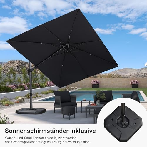 Der Gartenschirm Mast besteht ohne Lücke sämtliche Aluminium, das leicht hingegen robust ist. Vollaluminium-Mast und 8 hochbelastbare Rippen schützen vor Nässe und Rost