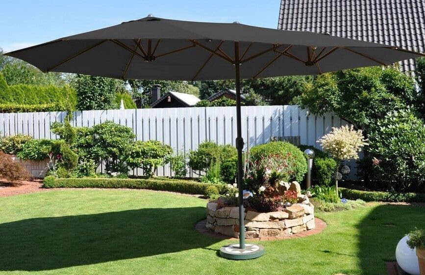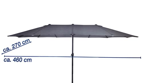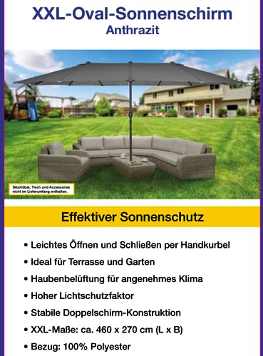QMBasic Doppelsonnenschirm 4,6 x 2,7 m Oval Anthrazit Gartenschirm Kurbel Sonnenschirm Marktschirm Terrassenschirm Gartenschirm