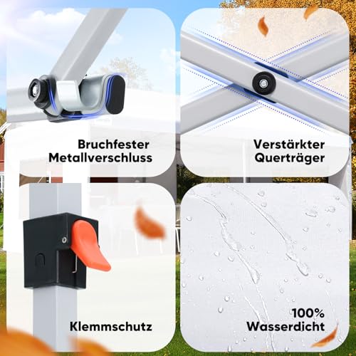 Erträglich und einfach zu installieren : Die 600D Oxford-Tragetasche kann überall hin mitgenommen werden und passt aka in den Kofferraum Ihres Autos, wenn Sie in den Urlaub fahren. Durch das einzigartige Design mit ausklappbaren Griffen ist sie erschütterungsfest und verhindert das Einklemmen der Hände. Der Pavillon kann von 2 Personen in abzgl. als 10 Minuten aufgebaut werden.