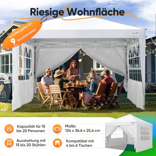 Quictent Faltpavillon komplett Jahr: 2 in 1 Pavillon mit 4 abnehmbaren Seitenwänden, 2 davon mit Reißverschluss für einen einfachen Abruf. Dieser Gartenpavillon kann im kalten Winter und im heißen Sommer zu ganz Jahreszeit genutzt werden.