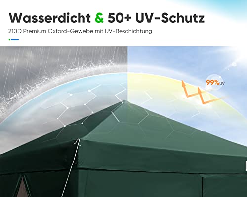 Quictent Pavillon 3×3 mit 4 Seitenteilen, Faltpavillon mit Entlüftung Wasserdicht Stabil Winterfest, Pop up Gartenpavillon mit 4 Sandsäcke, Grün