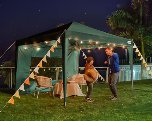 Vielseitig einsetzbar: Perfekter Pavillon an Stelle Outdoor-Sportarten, Hochzeiten, Veranstaltungen, Festivals, Flohmärkte, Gärten, Partys, Strände, Spielplätze und einen schönen Urlaub mit Familie und Freunden.Lieferumfang: 1x Pavillon + 2x Seitenwände mit Reißverschluss + 2x Seitenwände mit Fenster + 4x Sandsack + 1x Tragetasche 600D Oxford mit Rollen + 8x gemahlene Nägel.