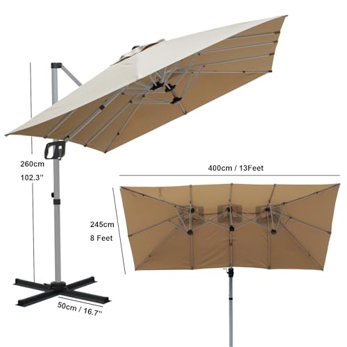 RANSENERS Ampelschirm Doppelsonnenschirm Rechteckig 400x240cm – Schirmständer Optional – Sonnenschirm mit 360° Drehbar – UV50+ Stoff Schützen Sie sich vor Sonnenstrahlen im Garten