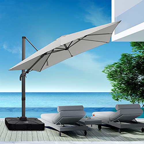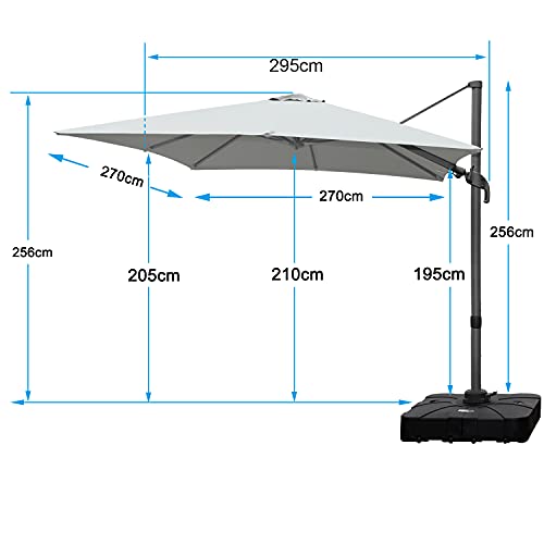 RANSENERS Ampelschirm 270 x 270 cm, Gestell Aluminium, Bespannung Polyester mit UV 80+ Schutz, 360° Drehbar, 4 Stufen Einstellbar (Hellgrau)
