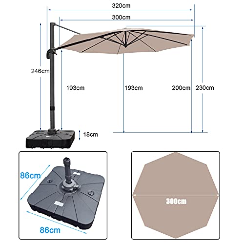 RANSENERS Ampelschirm Ø 300cm, Sonnenschirm Gestell Aluminium, Stoff aus Polyester mit UV-Schutz UPF80+, 360° Drehbar (Khaki)
