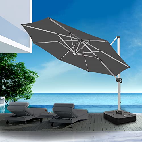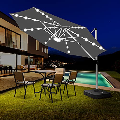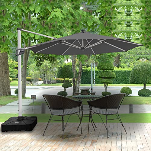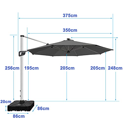 RANSENERS Ampelschirm Ø350cm mit Solar-LED, Sonnenschirm mit Schirmständer, Gestell Aluminium, Polyester Stoff mit UPF 80+, 360° Drehbar (Anthrazitgrau)