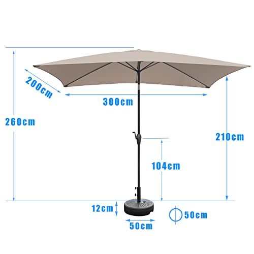 RANSENERS Sonnenschirm Marktschirm Gartenschirm 200 x 300 cm, Einstellbare Richtung, Gestell Aluminium/Stahl, Bespannung Polyester mit UV50+ Schutz Beiger