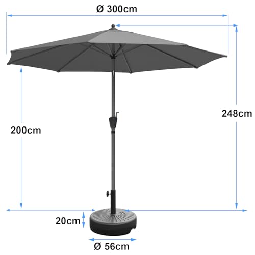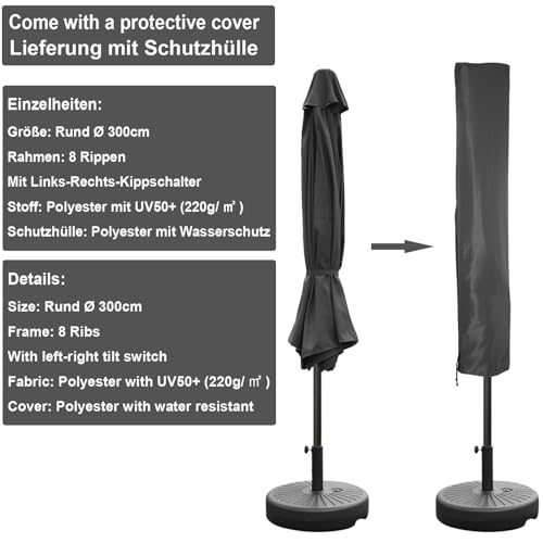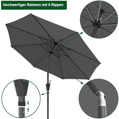 ANSENERS Sonnenschirm Marktschirm Ø300cm ansonsten Ø270cm – bloß/per Schirmständer Wahlweise – Kippbarer Gartenschirm per UPF50+ Rauschmittel – Sichern Selbige bevor Sonnenstrahlen im Garten