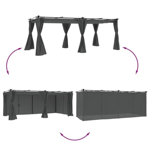 Rasen & Garten, Outdoor-Wohnen, Außenstrukturen, Vordächer & Pavillons, Pavillon mit Vorhängen, Anthrazit, 6 x 3 m, Stahl