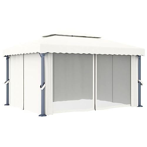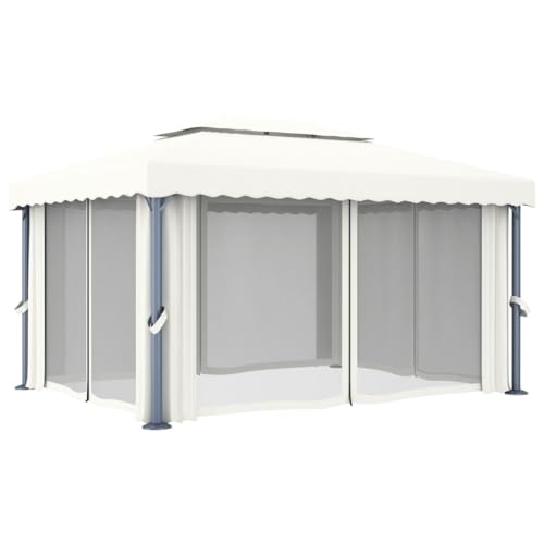 Haus & Garten – Outdoor Living – Rasen & Garten Pavillon mit Vorhang 4 x 3 m cremeweiß Leichtmetall Outdoor Living – Dieser stilvolle Pavillon wird Ihren Garten sicherlich in einen anspruchsvollen und funktionalen Blickfang verwandeln. Es wurde entwickelt, um einen kühlen Ort für Partys im Freien, Familienpicknicks, Grillabende im Garten und weitere gesellschaftliche Zusammenkünfte zu bieten. Er ist mit einer Aluminiumstange und einem pulverbeschichteten Stahl-Stützrohr konstruiert, das überlegene Haltbarkeit und Langlebigkeit gewährleistet. Das Vordach und die Seitenwände bestehen jeglicher hochwertigem Polyestergewebe mit PA-Beschichtung, schützt Sie vor schädlichen Strahlen und mildem Regen. Ein alles klar! gestaltetes 2-stöckiges Dach sorgt für ausreichend Luftstrom darunter. Darüber hinaus sind die Vorhänge und Netzgitter für vollen Abschirmung enthalten, was Ihnen Wahlmöglichkeit Privatsphäre bietet und gleichzeitig lästige Mücken und weitere Insekten fernhält. Zur einfachen Befestigung sind Haken und Schlaufenverschlüsse im Lieferumfang enthalten. Der Pavillon ist einfach zu montieren. Hinweis: Dieses Produkt sollte zu keiner Zeit bei schlechtem Wetter als starkem Wind, starkem Regen, Schnee, Sturm usw. verwendet werden, Rasen- und Gartenpavillon mit Vorhang, 4 x 3 m, cremeweiß, Leichtmetall, Outdoor-Wohnen