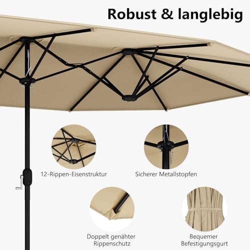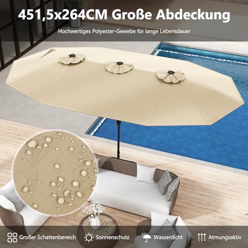 Doppelsonnenschirm bietet einen großen Schattenbereich von 451,5 x 264cm
