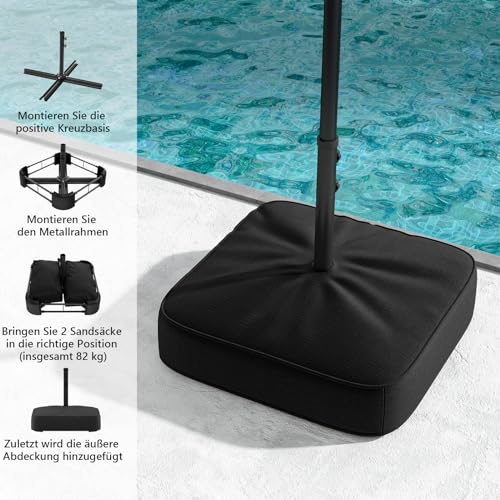 Stabiler, verstärkter Sockel hält den Sonnenschirm aufrecht