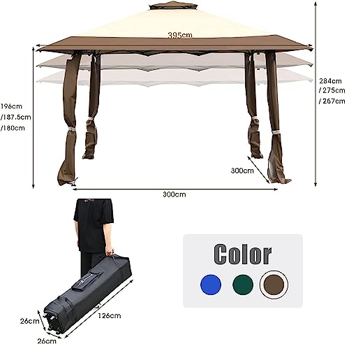 ★ 3 Verstellbare Höhen ★ Der Gartenpavillon ist 395 x 395cm groß und verfügt über drei verstellbare Höhen, die jeweils 8cm auseinander liegen und im Fetzen von 266-283cm verstellbar sind, damit Sie die Höhe koordinieren können, die zu Ihnen passt und Ihren unterschiedlichen Nutzungsanforderungen entspricht.