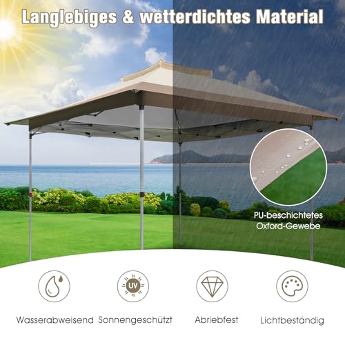 RELAX4LIFE Pavillon 3,6×3,6m, Gartenpavillon mit Doppeldach & Metallrahmen, Faltpavillon & Höhenverstellbar & Wasserdicht UV-Schutz 50+, Partyzelt mit Rolltasche, für Party Festival