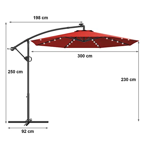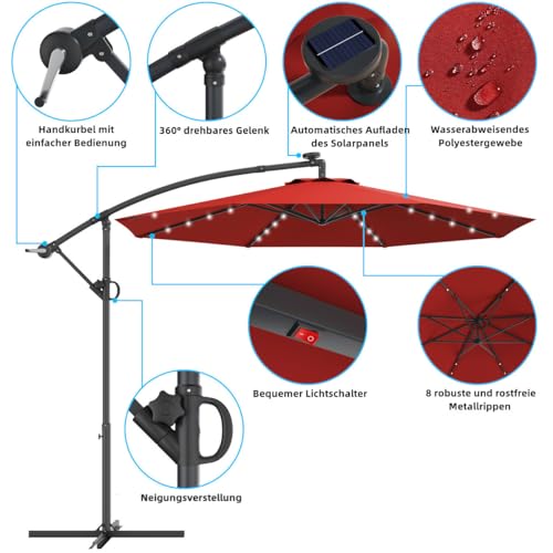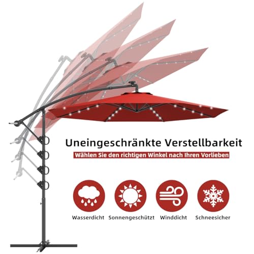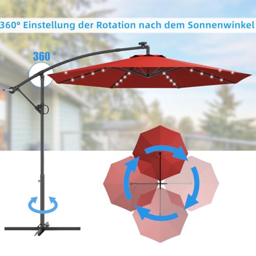 RELAX4LIFE Sonnenschirm 300 CM, 360° Drehbar Gartenschirm mit 32 Lichter, Kurbel & 8 Schirmrippen, UV-Schutz & stabilem Ständer, einstellbare Höhe & Winkel für Garten, Terrassen, Schwimmbad