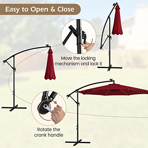 RELAX4LIFE Sonnenschirm, Neigbarer Ampelschirm mit 112 Solar-Beleuchtung & Stabiler Stände, Gartenschirm mit An-/Ausschalter & Klettbandverschluss, Terrassenschirm für Garten Balkon Terrasse (Weinrot)