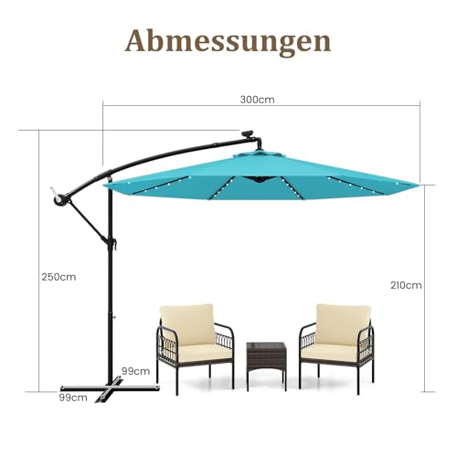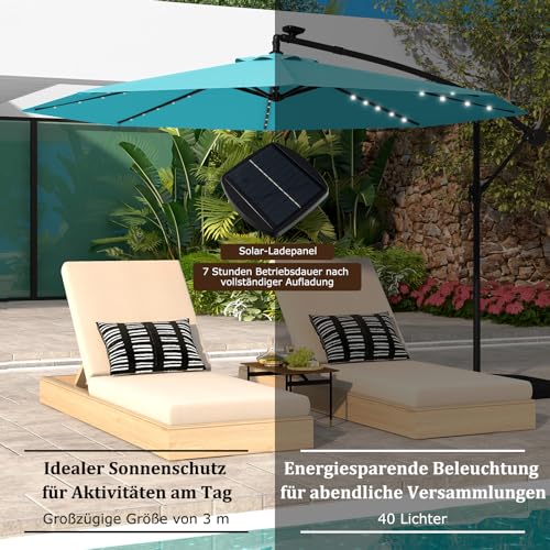 RELAX4LIFE Sonnenschirm Ø 300 cm, Terrassenschirm mit 40 Solar-LED-Leuchten, Ampelschirm mit Kurbel & Ständer, Gartenschirm wasserabweisend, Marktschirm mit UV-Schutz für Garten Pool Terrasse