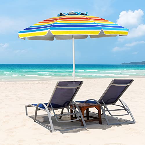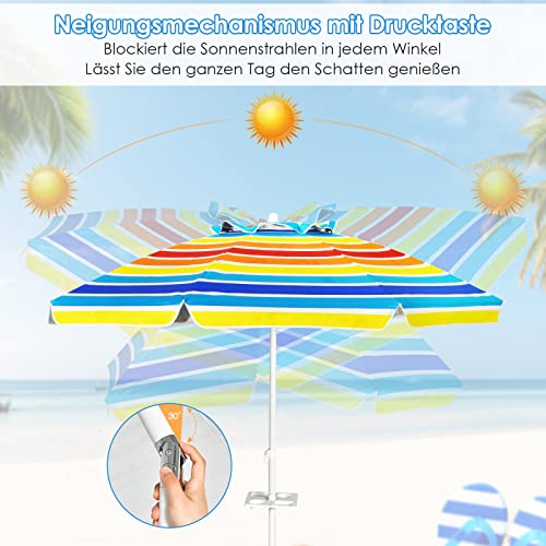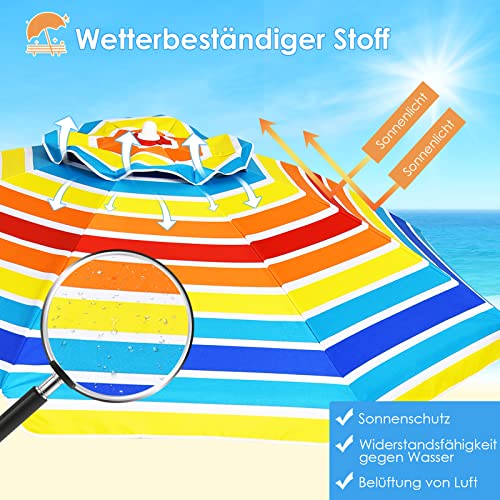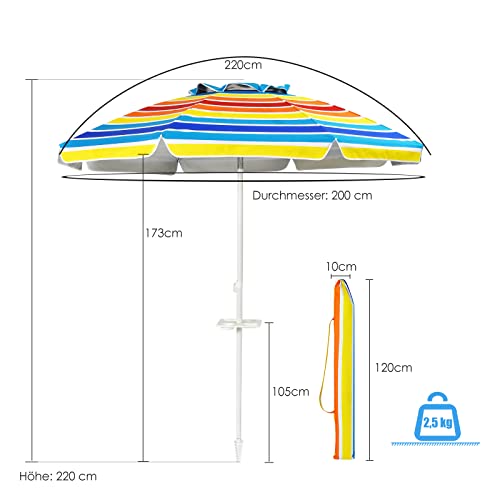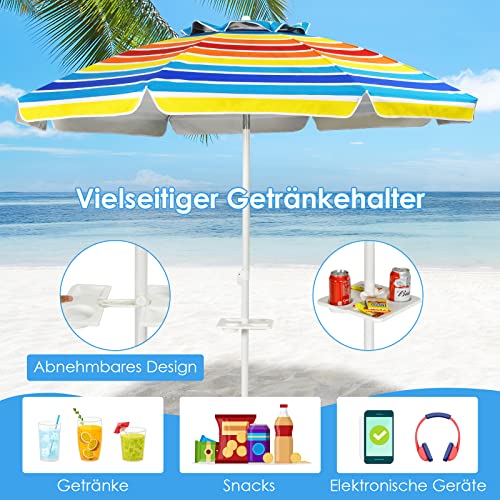 RELAX4LIFE Sonnenschirm Ø220cm, Gartenschirm Winkelverstellbar, Strandschirm UV-beständig&Wasserabweisend, Balkonschirm mit Getränkehalter&Tragtasche, Terrassenschirm für Garten Strand (Bunt)