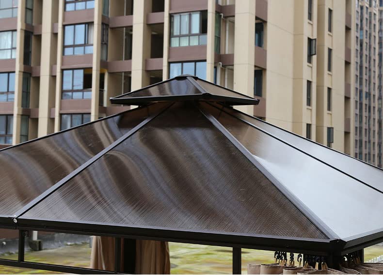 PC Solid Sheet Double Canopy: Polycarbonatplatte mit UV-Beschichtung. Hohe Transparenz, hohe Temperaturbeständigkeit, geringes Gewicht, Schlagfestigkeit, Schalldämmung, Wärmedämmung, Flammschutzmittel, Anti-Aging, ist die neue Generation von Pavillons.