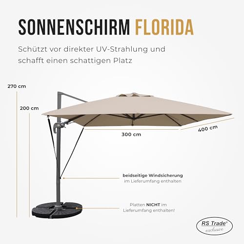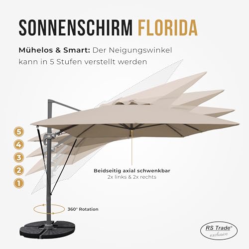 RS Abschluss: Hier liegen Sie umfassend – Abseitsposition breit und weich! Seit 2006 sind wir unseren Kunden ein zuverlässiger Partner, der mit seinen Produkten und deren Qualität zu überzeugen weiß. Bei uns finden sie viele Aufsatz rund um die Themen Haus und Garten, ATV Quad Zubehör (Cases etc.), Weihnachtsartikel und Dekorationsgegenstände. Ob es ein künstlicher Weihnachtsbaum, ein Sonnenschirm, eine XXL Sonnenliege aus Aluminium oder Polyrattan, eine Kissenbox oder eine Gartengarnitur, bei uns finden Sie fast alles was Ihr Herz begehrt! Mit dem RS Abschluss Sonnenschirm schützen Sie sich und Ihre Gäste vor direkter UV- Strahlung und arbeiten gleichzeitig ein schattiges Plätzchen auf Ihrem Balkon, der Terrasse oder im Garten. Die Schirmbespannung besteht aus 100% Polyester und ist wasserabweisend, so können Sie den Schirm auch bei Regen nutzen. Mit dem integrierten Kurbelsystem können Sie den Schirm bequem mit der leichtläufigen Handwinde öffnen und herleiten. So haben Sie in Sekunden Ihren Sonnenschirm gespannt und können den Sommer genießen – Kurbeln statt schwer heben. In verschiedene Neigungswinkel lässt sich der Gartenschirm stufenlos mit dem Arretierungshebel einstellen. Einfach den Hebel öffnen, den gewünschten Winkel einstellen und von neuem herleiten. So lässt sich der Schirm individuell nach dem Stand der Sonne anpassen. Dank der geneigten Aufhängung ist dieser Gartenschirm freischwebend und kann trotz festen Ständers um 360° gedreht werden. Das mitgelieferte Cover für Abschirmung gegen Regen und UV-Strahlung sorgt dafür, dass Ihr Sonnenschirm optimal geschützt ist. Insbesondere wenn Sie Ihren Schirm längere Zeit nicht nutzen, empfiehlt sich die Schirm Umschlag überzuziehen, um ein Ausbleichen zu unterbinden. RS Abschluss – erleben Sie Urlaub zu Hause mit unseren Gartenmöbeln!