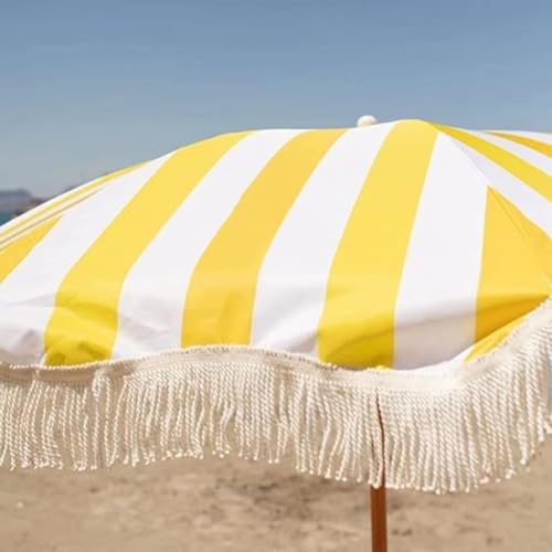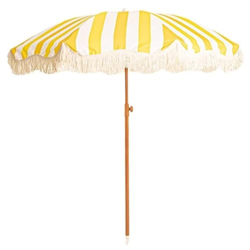 Der tropische Strandurlaubsschirm mit Quasten im Bohème-Stil eignet sich hervorragend, um auf Terrassen und Veranden eine Oase der Ruhe zu kultivieren, im Freien zu frühstücken, Kaffee zu trinken oder Kinder an heißen Sommertagen draußen spielen zu lassen! Mit weißen Fransen. Stilvoller und individueller gestreifter Schirm. Affinität per Knopfdruck zum Portieren des Schirms an den Sonnenstand. Obere und untere Stangen können miteinander abhängig werden. Ohne Sockel. 3 Farben: breit-weiß gestreift, gelb-weiß gestreift, grün-weiß gestreift. Material: Stange in Holzfarbe, Polyestergewebe. Schirmlänge: 200 cm. Schirmhöhe: 215 cm. Schirmlänge: 180 cm. Obere Mittelstange: 28 mm. Untere Mittelstange: 32 mm. Lieferumfang: 1 x Strandschirm (ohne Sockel). 1 x Tasche.