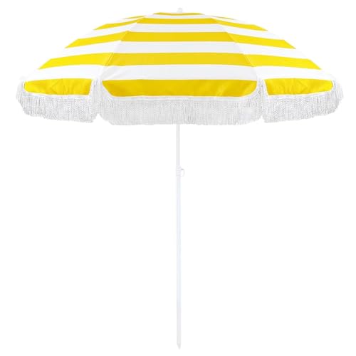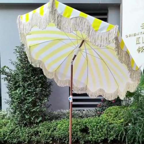 Böhmischer gestreifter Strandschirm, Gartensonnenschirm mit Quaste, modischer und individueller Schirm im tropischen Strandurlaubsstil