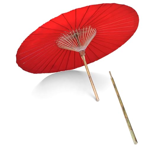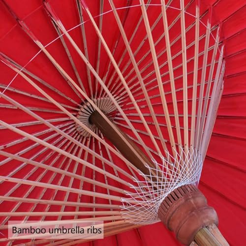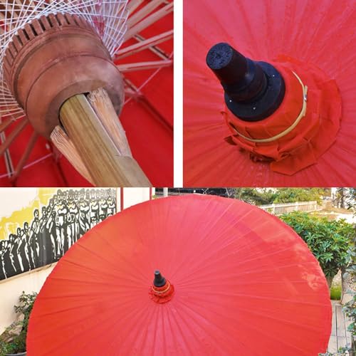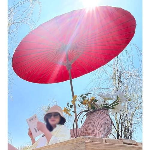Rund Bambus-Sonnenschirm für den chinesischen, 200 cm, Retro-Shanghai-Gartenschirm, Sonnenschutz, Wasserfest, Terrassenschirm für den Außenbereich, Rot