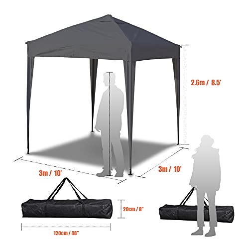 SANHENG Pavillon 3×3 WASSERDICHT, Faltpavillon wasserdicht, Partyzelt schnellaufbau Gartenpavillon Pop Up Zelt Sonnenschutz Stahlgestell (Grau,3×3 m ohne Seitenteile)