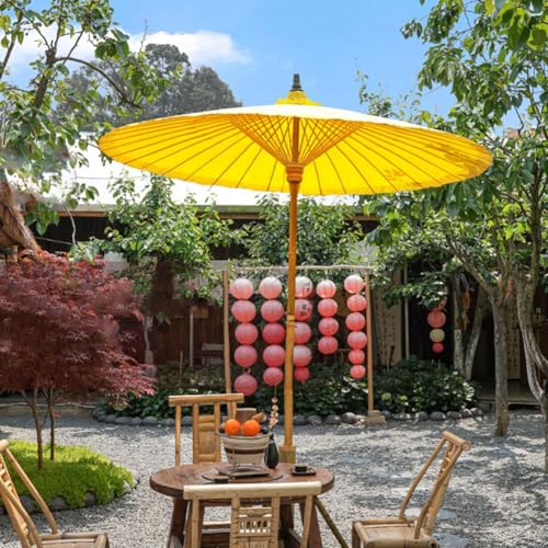 SBCGFY 200 cm Gartensonnenschirm, handgefertigter japanischer Terrassenschirm aus geöltem Papier mit stabilen Streben, Sonnenschutzdach für den Außenbereich für Marktterrassen
